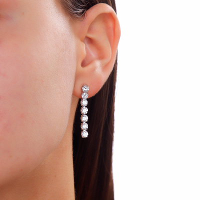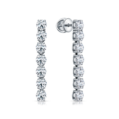 Серьги с 14 бриллиантами выращенными, 3.49 карат, огранка круг 57 граней, цвет 3, чистота 6, тип огранки А; Белое золото 585 пробы.