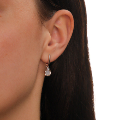 Серьги с 2 бриллиантами природными, 0.006 карат, огранка круг 17 граней, цвет 2, чистота 2, тип огранки А; 2 перламутрами белыми природными; Розовое золото 585 пробы.