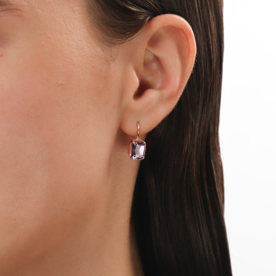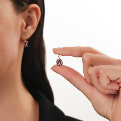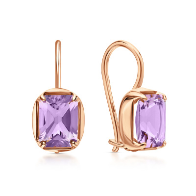 Серьги с 2 аметистами природными, 2.58 карат; Розовое золото 585 пробы.