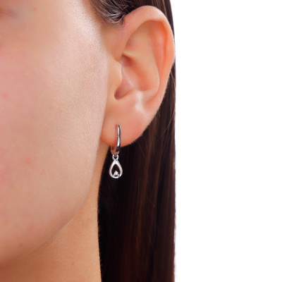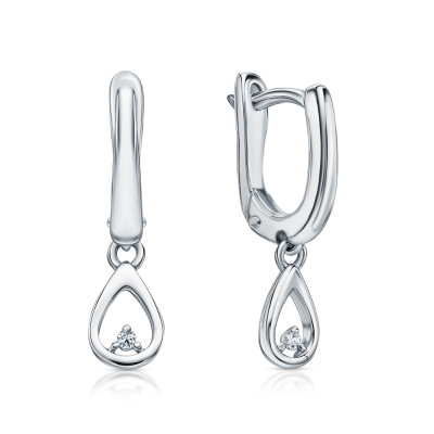 Серьги с 2 бриллиантами выращенными, 0.02 карат, огранка круг 57 граней, цвет 2, чистота 5; Серебро 925 пробы.