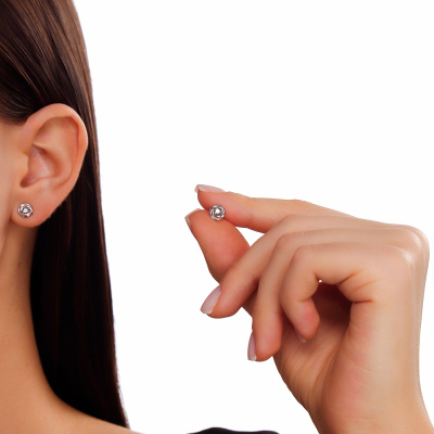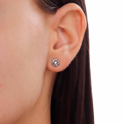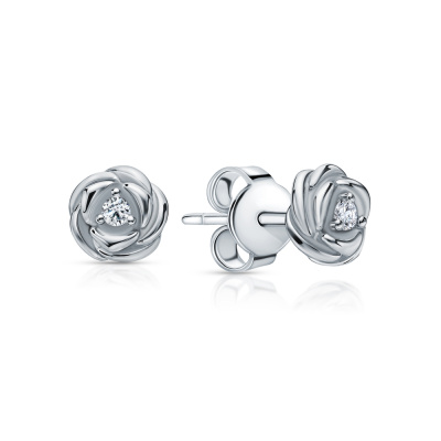 Серьги с 2 бриллиантами выращенными, 0.07 карат, огранка круг 57 граней, цвет 2, чистота 5; Серебро 925 пробы.