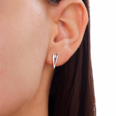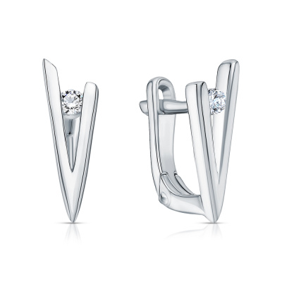 Серьги с 2 бриллиантами выращенными, 0.08 карат, огранка круг 57 граней, цвет 2, чистота 5; Серебро 925 пробы.