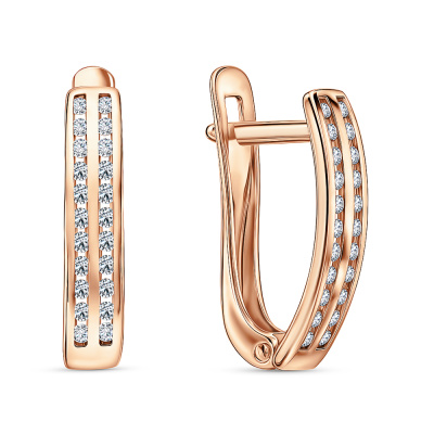 Серьги с 44 бриллиантами природными, 0.14 карат, огранка круг 17 граней, цвет 2, чистота 3, тип огранки Б; Розовое золото 585 пробы.