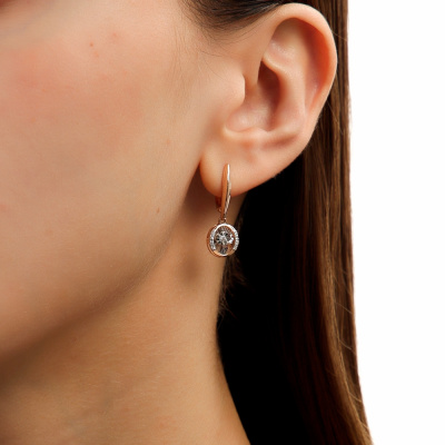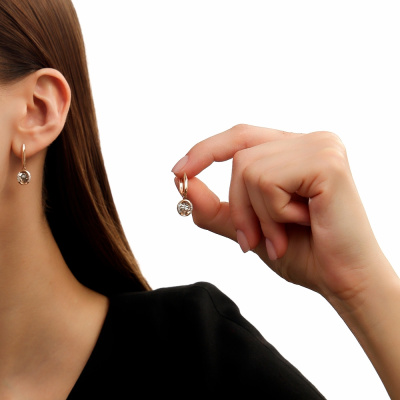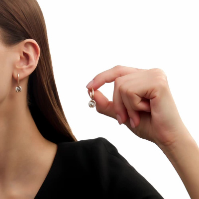 Серьги с 2 бриллиантами природными, 0.02 карат, огранка круг 57 граней, цвет 3, чистота 6, тип огранки А; 16 бриллиантами природными, 0.07 карат, огранка круг 17 граней, цвет 2, чистота 2, тип огранки А; Розовое золото 585 пробы.