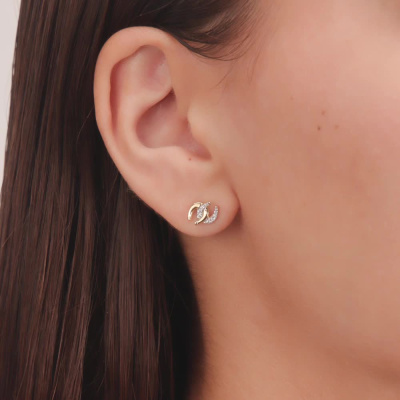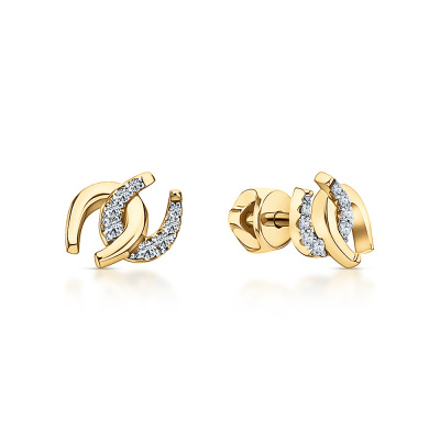 Серьги с 4 бриллиантами природными, 0.03 карат, огранка круг 57 граней, цвет 3, чистота 6, тип огранки А; 8 бриллиантами природными, 0.03 карат, огранка круг 57 граней, цвет 3, чистота 6, тип огранки А; 4 бриллиантами природными, 0.009 карат, огранка круг 57 граней, цвет 3, чистота 6, тип огранки А; Желтое золото 585 пробы.