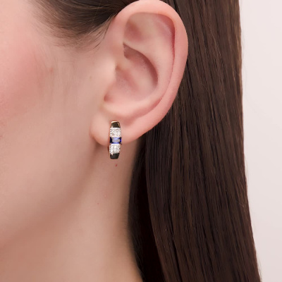 Золотые серьги с бриллиантами природными и сапфирами выращенными