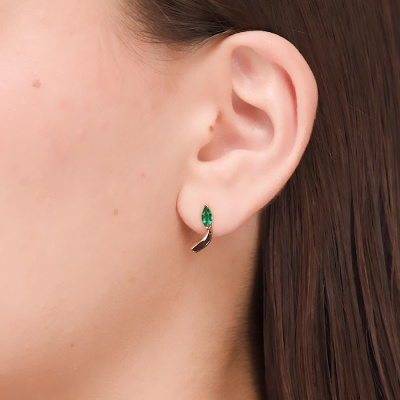 Серьги с 2 гидротермальными изумрудами, 0.4 карат; Розовое золото 585 пробы.