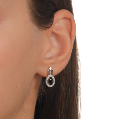 Серьги с 48 бриллиантами природными, 0.14 карат, огранка круг 17 граней, цвет 2, чистота 2, тип огранки А; 2 сапфирами природными, 1.15 карат, цвет 2, чистота 2, тип огранки Б; Розовое золото 585 пробы.