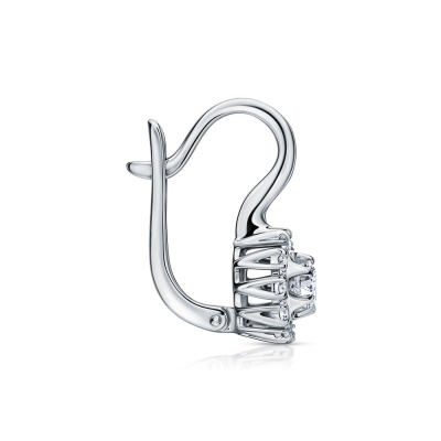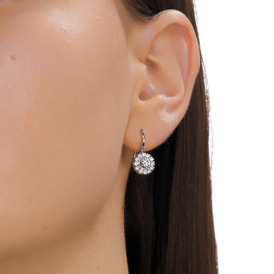 Серьги с 2 бриллиантами выращенными, 0.33 карат, огранка круг 57 граней, цвет 3, чистота 6, тип огранки А; 24 бриллиантами выращенными, 0.4 карат, огранка круг 57 граней, цвет 3, чистота 6, тип огранки А; Белое золото 585 пробы.