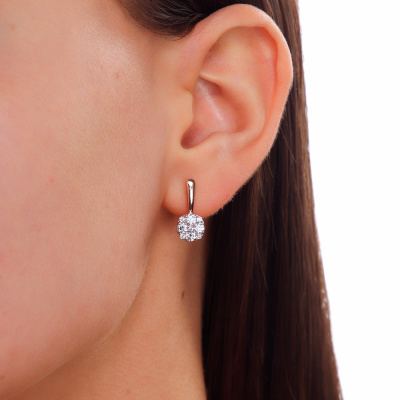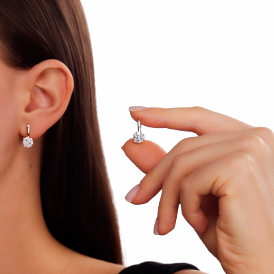 Серьги с 8 бриллиантами выращенными, 0.73 карат, огранка круг 57 граней, цвет 3, чистота 6, тип огранки А; 8 бриллиантами выращенными, 0.08 карат, огранка круг 57 граней, цвет 3, чистота 6, тип огранки А; 2 бриллиантами выращенными, 0.02 карат, огранка круг 57 граней, цвет 3, чистота 6, тип огранки А; Розовое золото 585 пробы.