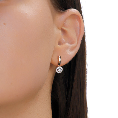 Серьги с 2 бриллиантами выращенными, 0.25 карат, огранка круг 57 граней, цвет 3, чистота 6, тип огранки А; 24 бриллиантами выращенными, 0.18 карат, огранка круг 57 граней, цвет 3, чистота 6, тип огранки А; Розовое золото 585 пробы.