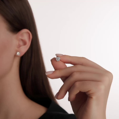 Серьги с 2 бриллиантами выращенными, 0.19 карат, огранка круг 57 граней, цвет 3, чистота 6, тип огранки А; 16 бриллиантами выращенными, 0.32 карат, огранка круг 57 граней, цвет 3, чистота 6, тип огранки А; Белое золото 585 пробы.