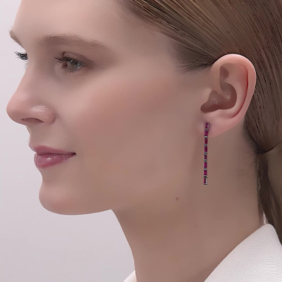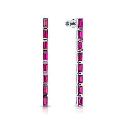 Серьги с 16 рубинами природными, 2.36 карат, цвет 2, чистота 2, тип огранки Б; Белое золото 585 пробы.