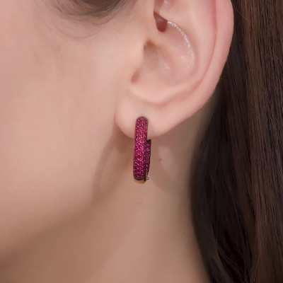 Серьги с 136 рубинами природными, 2.44 карат, цвет 2, чистота 2, тип огранки В; Розовое золото 585 пробы.