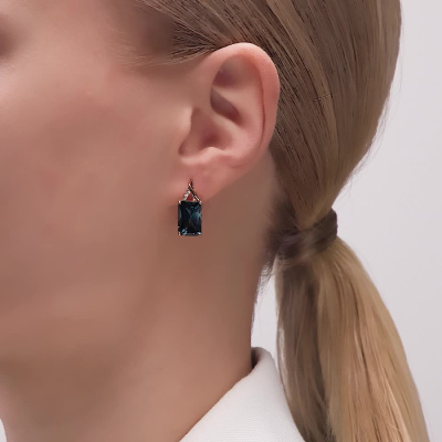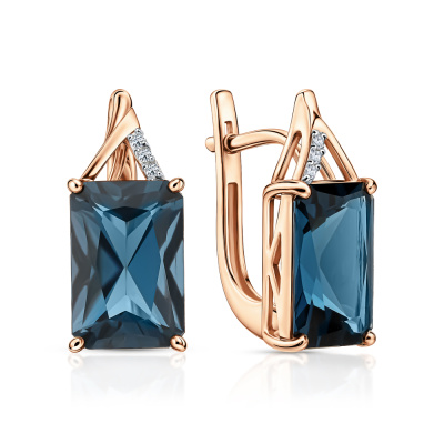 Серьги с 6 бриллиантами природными, 0.03 карат, огранка круг 57 граней, цвет 4, чистота 4, тип огранки А; 2 топазами лондон природными, 10.34 карат, тип огранки А; Розовое золото 585 пробы.