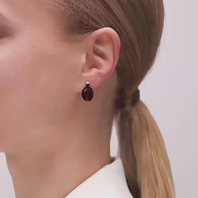Золотые серьги с бриллиантами природными и кварцами дымчатыми природными