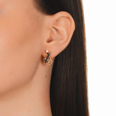 Серьги с 20 бриллиантами черными природными облагороженными, 0.06 карат, огранка круг 57 граней, цвет 7, чистота 6, тип огранки А; Розовое золото 585 пробы.