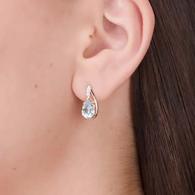 Золотые серьги с бриллиантами природными и топазами природными