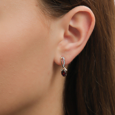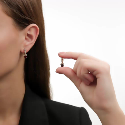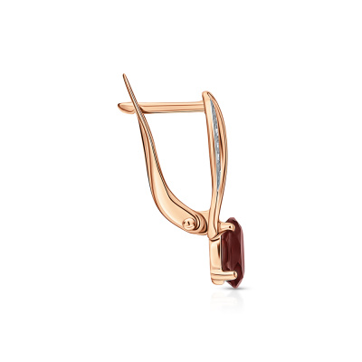 Серьги с 6 бриллиантами природными, 0.02 карат, огранка круг 17 граней, цвет 2, чистота 2; 2 гранатами природными, 1.84 карат; Розовое золото 585 пробы.