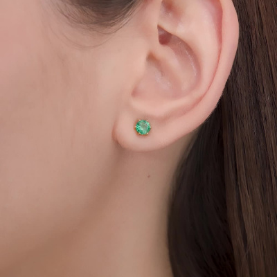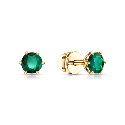Серьги с 2 изумрудами природными, 0.83 карат, цвет 3, чистота 3, тип огранки В; Желтое золото 585 пробы.