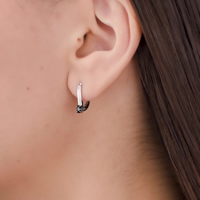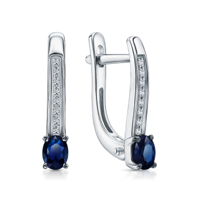 Серьги с 16 бриллиантами природными, 0.03 карат, огранка круг 17 граней, цвет 2, чистота 2, тип огранки А; 2 сапфирами природными, 0.41 карат, цвет 2, чистота 2, тип огранки Б; Белое золото 585 пробы.