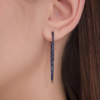 Серьги с 84 сапфирами природными, 2.28 карат, цвет 2, чистота 2, тип огранки В; Белое золото 585 пробы.