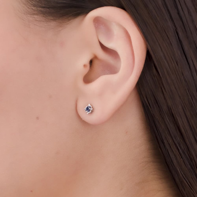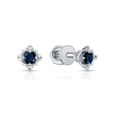 Серьги с 2 сапфирами природными, 0.15 карат, цвет 2, чистота 2, тип огранки В; Белое золото 585 пробы.