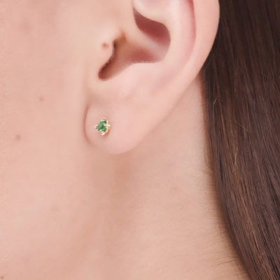 Серьги с 2 изумрудами природными, 0.1 карат, цвет 3, чистота 3, тип огранки В; Желтое золото 585 пробы.