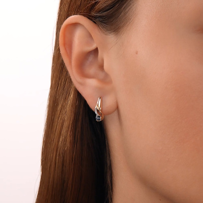 Серьги с 6 бриллиантами природными, 0.01 карат, огранка круг 17 граней, цвет 2, чистота 2, тип огранки А; 2 сапфирами природными, 0.14 карат, цвет 2, чистота 2, тип огранки В; Розовое и белое золото 585 пробы.