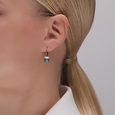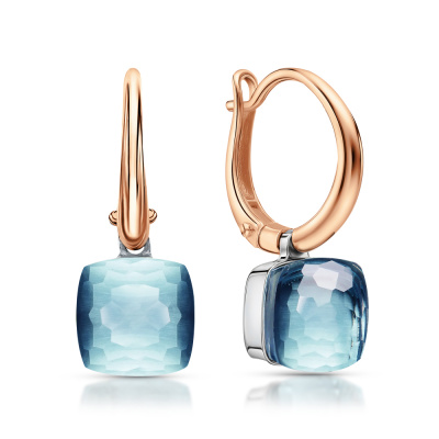 Серьги с 2 топазами скай природными, 8.92 карат; Розовое золото 585 пробы.