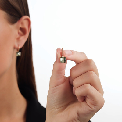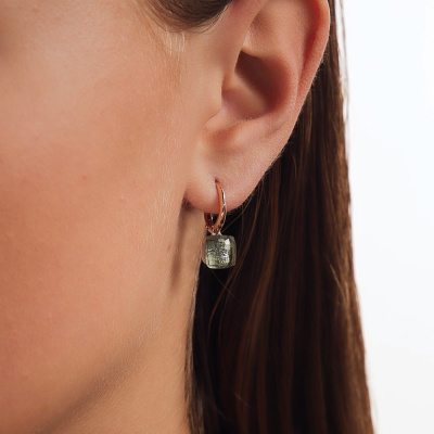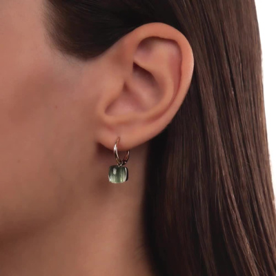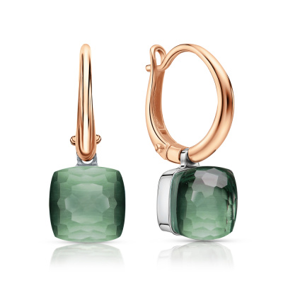 Серьги с 2 празиолитами природными, 6.33 карат; Розовое золото 585 пробы.