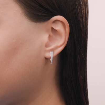 Серьги с 12 бриллиантами природными, 0.04 карат, огранка круг 17 граней, цвет 2, чистота 2, тип огранки А; 38 бриллиантами природными, 0.07 карат, огранка круг 17 граней, цвет 2, чистота 2, тип огранки А; Розовое золото 585 пробы.
