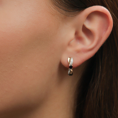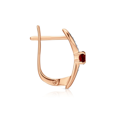 Серьги с 16 бриллиантами природными, 0.05 карат, огранка круг 17 граней, цвет 2, чистота 2, тип огранки А; 2 гранатами природными, 0.44 карат; Розовое золото 585 пробы.