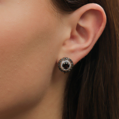 Золотые серьги с бриллиантами природными и кварцами дымчатыми природными