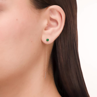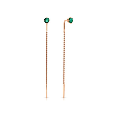 Серьги с 2 изумрудами природными, 0.45 карат, цвет 3, чистота 3, тип огранки В; Розовое золото 585 пробы.