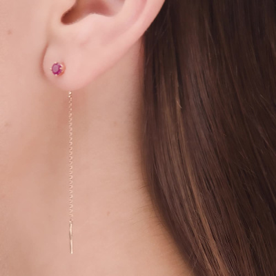 Серьги с 2 рубинами природными, 0.55 карат, цвет 2, чистота 2, тип огранки В; Розовое золото 585 пробы.