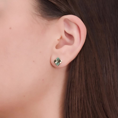 Серьги с 16 изумрудами природными, 0.21 карат, цвет 3, чистота 3, тип огранки В; Желтое золото 585 пробы.
