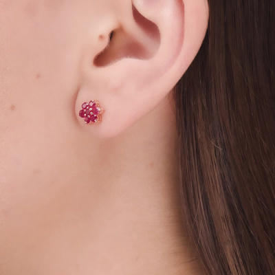 Серьги с 14 рубинами природными, 1.1 карат, цвет 2, чистота 2, тип огранки В; Розовое золото 585 пробы.