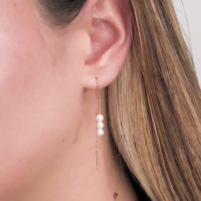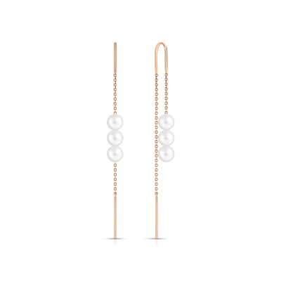 Серьги с 6 жемчугами пресноводными культ.белыми; Розовое золото 585 пробы.