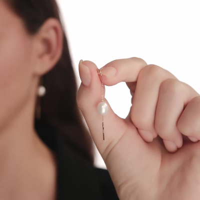 Серьги с 2 жемчугами пресноводными культ.белыми; Розовое золото 585 пробы.