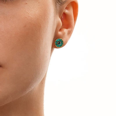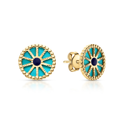 Золотые серьги с эмалью и перламутром природным