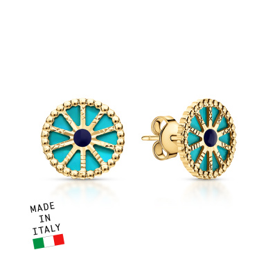 Серьги с 2 перламутрами голубыми природными; эмаль синяя; Желтое золото 585 пробы.