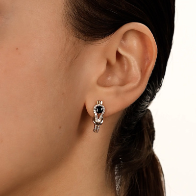 Серьги с 60 бриллиантами природными, 0.25 карат, огранка круг 17 граней, цвет 2, чистота 2, тип огранки А; 2 сапфирами природными, 0.51 карат, цвет 2, чистота 2, тип огранки В; Розовое золото 585 пробы.