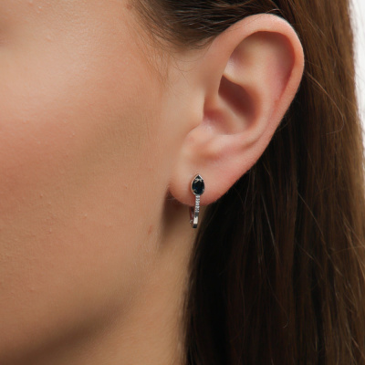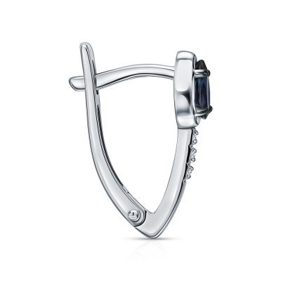 Серьги с 6 бриллиантами природными, 0.02 карат, огранка круг 17 граней, цвет 2, чистота 2, тип огранки А; 2 сапфирами природными, 0.5 карат, цвет 2, чистота 2, тип огранки Б; Белое золото 585 пробы.