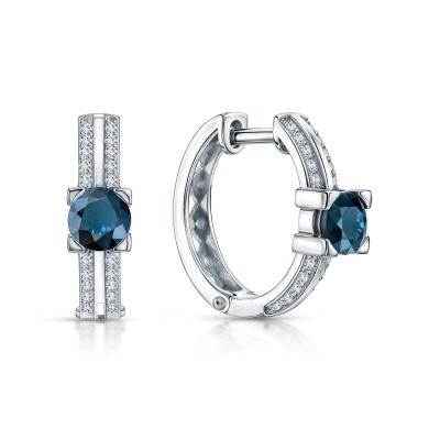 Серьги с 40 бриллиантами природными, 0.19 карат, огранка круг 17 граней, цвет 2, чистота 2, тип огранки А; 2 топазами лондон природными, 1.03 карат; Белое золото 585 пробы.