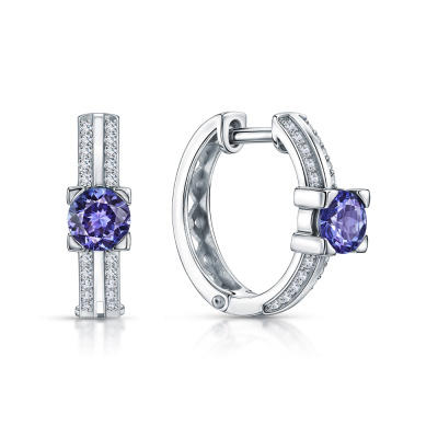 Серьги с 40 бриллиантами природными, 0.19 карат, огранка круг 17 граней, цвет 2, чистота 2, тип огранки А; 2 танзанитами природными, 1.07 карат; Белое золото 585 пробы.