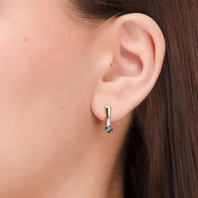 Серьги с 2 бриллиантами природными, 0.009 карат, огранка круг 17 граней, цвет 2, чистота 2, тип огранки А; 2 топазами лондон природными, 0.61 карат; Розовое золото 585 пробы.