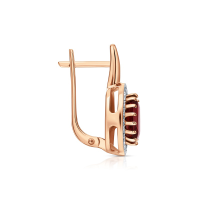 Серьги с 42 бриллиантами природными, 0.13 карат, огранка круг 17 граней, цвет 2, чистота 2, тип огранки А; 2 родолитами природными, 2.96 карат, тип огранки Б; Розовое золото 585 пробы.
