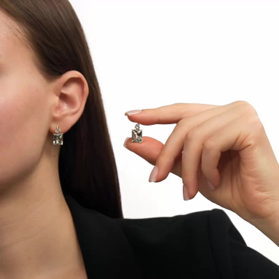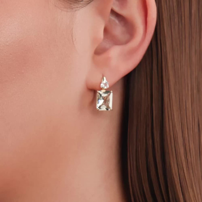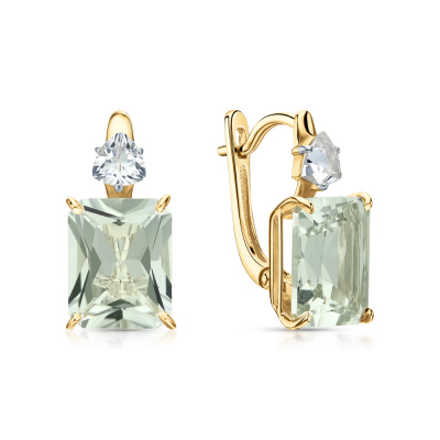 Серьги с 2 празиолитами природными, 5.45 карат; 2 топазами бесцветными природными, 0.55 карат; Желтое золото 585 пробы.