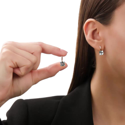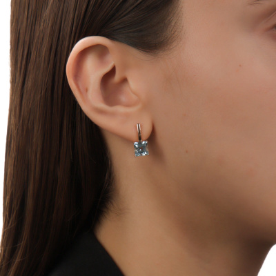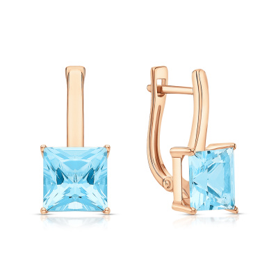 Серьги с 2 топазами скай природными, 4.19 карат; Розовое золото 585 пробы.